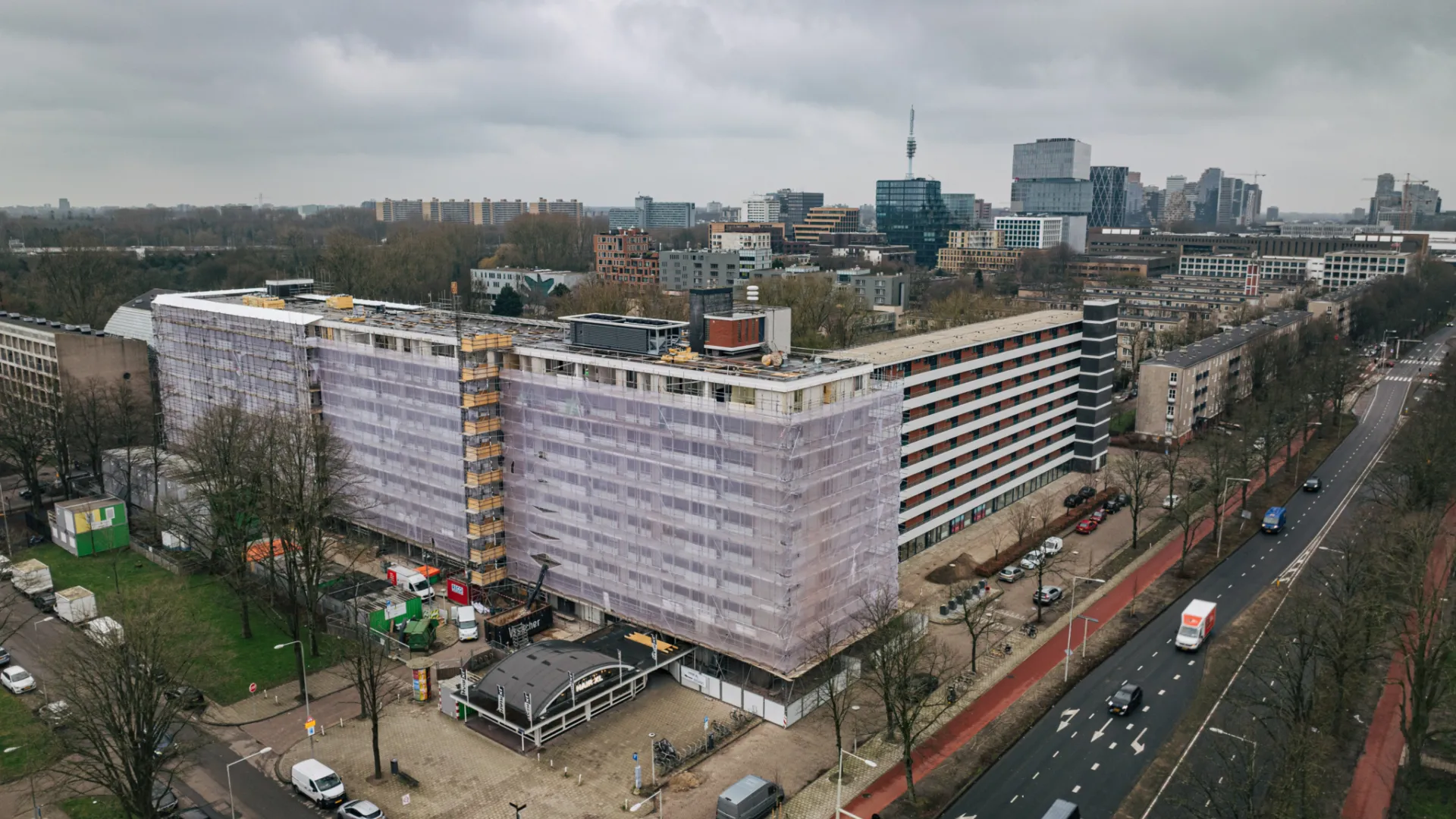 Parallel aan het betonherstel is het Rivierenhuis uitgegroeid tot een van de grootste biobased renovatieprojecten van Nederland. Met slimme keuzes in ontwerp, materiaal en fasering is er al ruim 1,3 miljoen kilo CO₂ bespaard, zonder concessies te doen aan constructieve veiligheid.