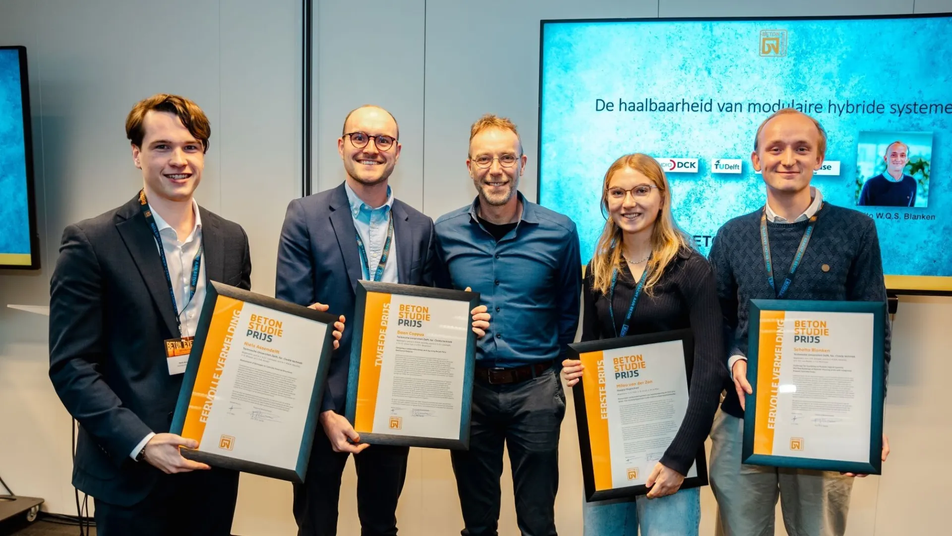 Er werden ook twee eervolle vermeldingen uitgereikt. Niels Assendelft (TU Delft) kreeg lof voor zijn data-analyse van schades in parkeergarages en de bruikbare schadecatalogus die hieruit voortkwam. De andere vermelding ging naar Schelto Blanken (TU Delft), die onderzocht hoe modulaire woningbouw in middelhoogbouw mogelijk wordt door hybride systemen met geïntegreerde betonkernen. Beide studies zijn volgens de jury praktisch toepasbaar en bieden een goed aanknopingspunt voor verder onderzoek.