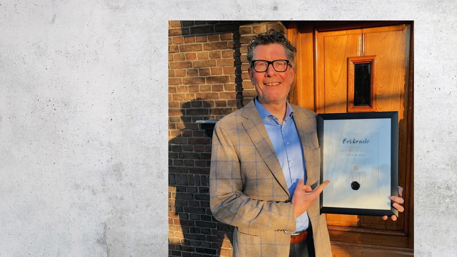 ‘Ik was compleet verrast, vond het een hele eer. Op de oorkonde stond een tekst waarin ik mezelf echt herkende. Er werd benoemd dat als er iets geregeld moet worden, ik daar ook meteen werk van maak. Dat klopt wel. Als de Betonvereniging mij belt voor een incompanytraining, dan ga ik niet eerst drie weken nadenken, dan regel ik het gewoon.